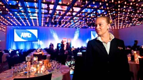 Hotelschoolstudente Aranka Bos loopt stage in het Sofitel Sydney Wentworth hotel in Australia. Het Sofitel is een vijfsterrenhotel in het centrum van Sydney.