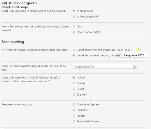 - Kies als soort onderwijs: ’voltijd’.