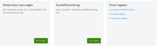 Je klikt in de tegel Studiefinanciering op de groene button 'aanvragen'.Stap 2